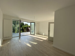 Das Haus verfügt über 3 2/2 Zimmer. Das Erdgeschoss ist mit einem kombinierten Wohn-/Esszimmer mit offenem Küchenbereich und Zugang auf die Terrasse und in den Garten sowie modern gefliestem, hellen Gäste-WC mit Handtuchheizkörper versehen.